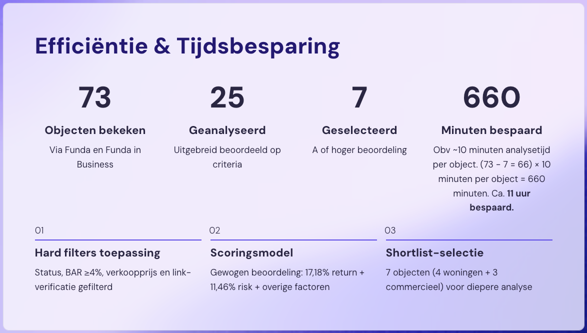 Dagelijks analyseren we duizenden vastgoedobjecten in Nederland. Alleen de top 3% haalt de selectie.